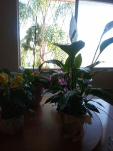 Estava descartada, à espera de alguém que pudesse cuidá-la. Quem abandonou-a no vaso tinha essa intenção. Deixando -a no vaso, teria mais chances de ser adotada.A planta Lírio da paz requer cuidados para se desenvolver,nem muito sol, nem muita sombra, igual a paz mundial, precisa de equilíbrio. Eu adotei o lírio da paz. Fiz um esforço físico para carregar o vaso até o elevador.